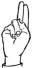 На ћирилици написано СИМОН КОШУТИНАЦ састоји се из 14 слова [?]. Исписано ћириличном једноручном азбуком за глувонеме: